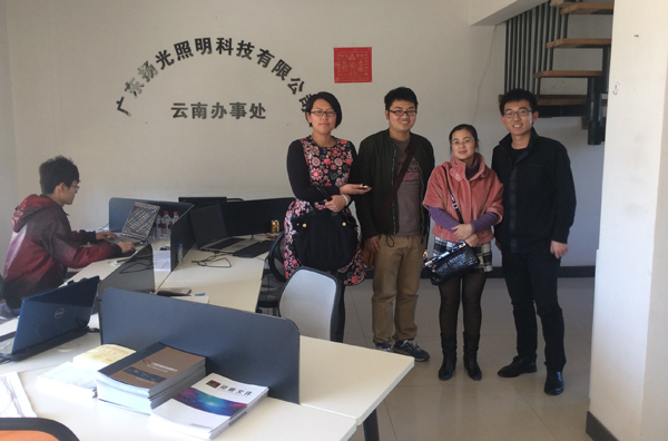 為了讓客戶更加客觀全面的了解我公司,云南區域洪經理向融科智地三位客戶講解了公司的企業文化、發展歷程、項目發展情況等,并帶領客戶參觀了云南辦事處的辦公環境,詳細的介紹了揚光照明公司的現狀和發展情況。