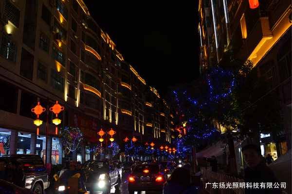 府前街夜景工程項目位于湖南宜章,因為是整條街的亮化,包括商業建筑,政府大樓,人行道,天橋,園林,廣場,酒店等,項目燈具數量種類多,又因臨近春節材料采購訂制難度大;街道長,并且湖南的天氣比較冷,凍雨天氣多;時間緊,施工時間只有一個月,這對整個公司的施工是一個大的考驗。